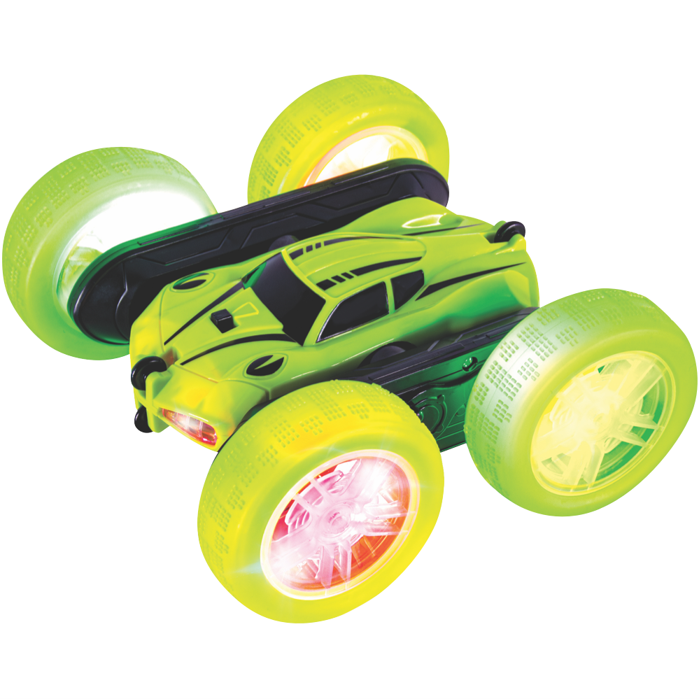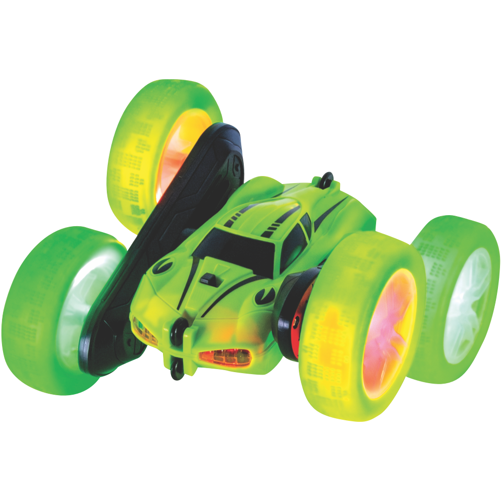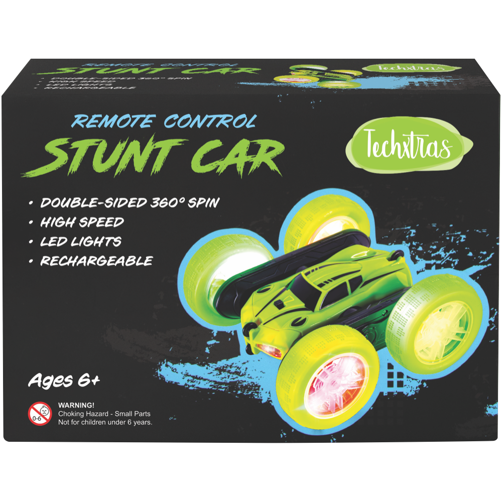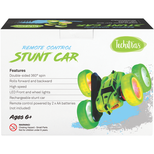 Take your play to the next level with this green Remote Control Stunt Car that's ready for action. The car comes with a powerful 500mAh battery so you can enjoy longer stunt sessions without constant recharging. Its compact size makes it easy to handle fitting neatly in its 200mm wide by 175mm deep box when not in use. Plus you'll have peace of mind with the included 1-year manufacturer's warranty. Model GAN11294.