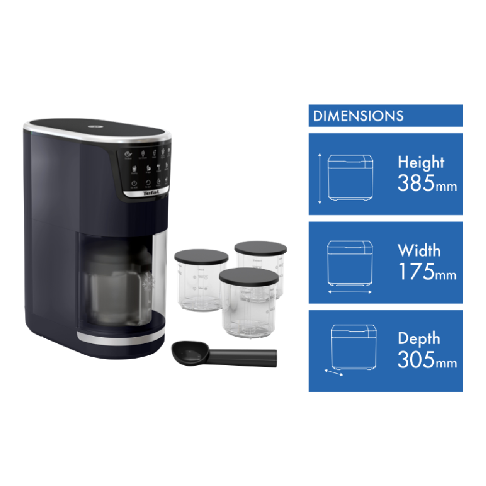Additional Features Unique 1-Step Perfector technology ensures perfect results in one shot—for smooth and creamy results with no need to re-spin, Dedicated programme to add toppings, Digital recipe book with 50 ideas to get started, Full access for cleaning to every part in contact with food