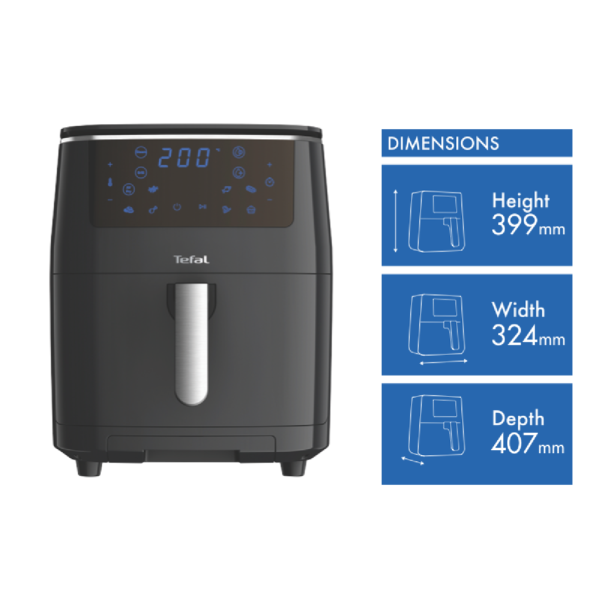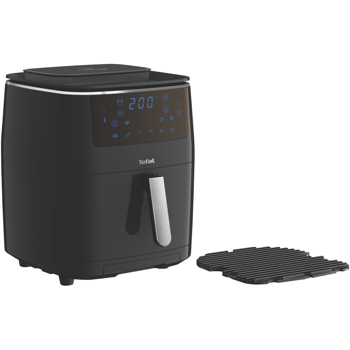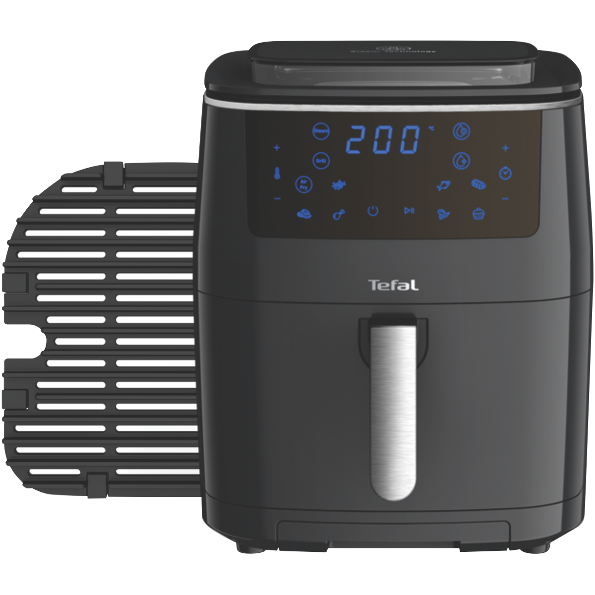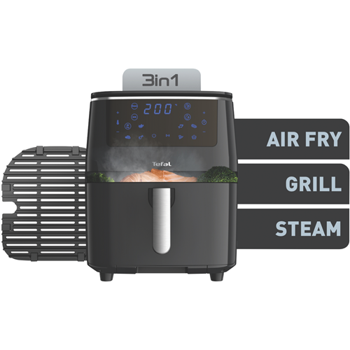 Satisfy all your air frying grilling and steaming needs with the versatile Tefal Easy Fry Grill & Steam XXL Air Fryer. This powerful multi-cooker features 7 automatic cooking programs to easily fry grill steam and bake a wide variety of foods with the touch of a button. Its spacious 6.9 litre capacity caters to large families while the intuitive LED touchscreen and digital controls make operation a breeze. Grill juicy steaks burgers and more on the durable die cast aluminium grid grill plate. Or use the steam function and 1.1 litre water tank to infuse vegetables fish and meat with mouthwatering flavour and moisture. Thanks to Tefal's patented non-stick coating cleaning up is hassle-free. With up to 1900W of power temperature range from 80 to 200°C and a 60 minute timer with auto shut-off you'll have precision control over your cooking. Enjoy fast healthy meals for the whole family with the Tefal Easy Fry Grill & Steam XXL Air Fryer. The manufacturer's part number for this product is FW2018. Discover how this versatile multi-cooker can enhance your cooking today.