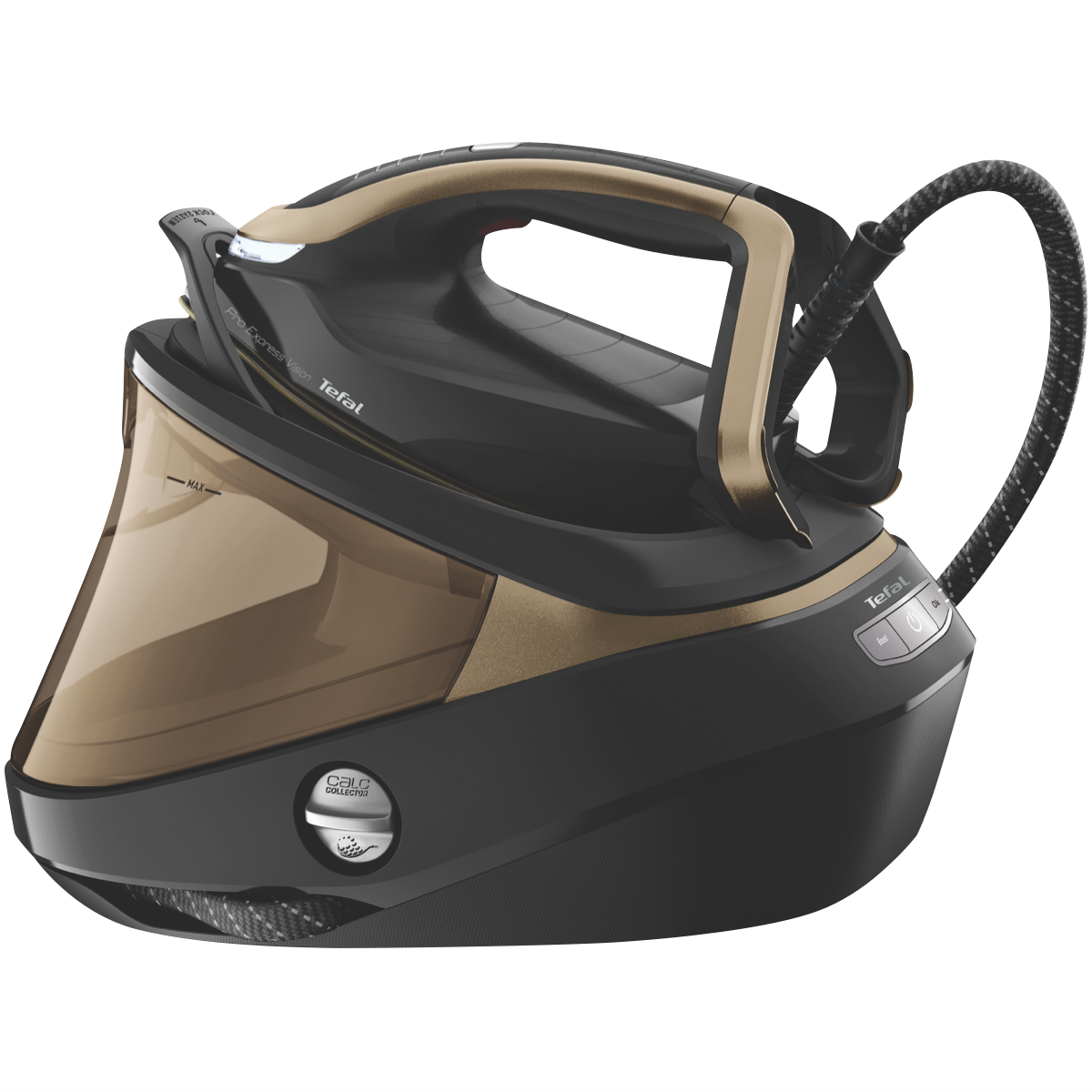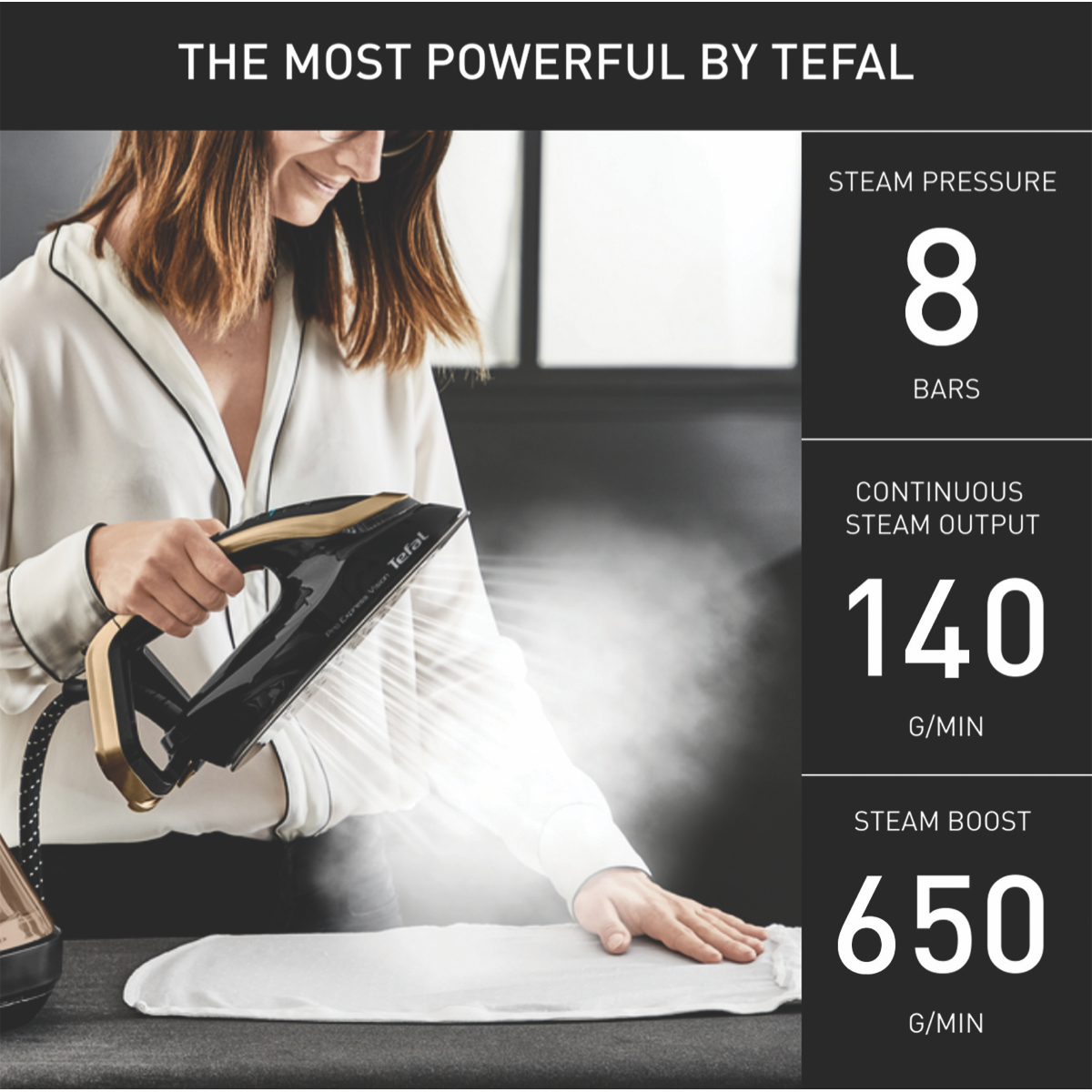 Say goodbye to ironing hassles and hello to perfectly pressed clothing with the Tefal Pro Express Vision steam generator. This powerful steam station iron makes quick work of stubborn wrinkles thanks to its high steam output of up to 140 grams per minute and 8 bars of pump pressure. The durable Durilium AirGlide soleplate effortlessly glides over all fabrics while the removable 1.8 liter water tank allows continuous steam. Smart features like the LED vision light and self-cleaning system ensure optimized performance. With the Tefal Pro Express Vision you'll achieve flawless results every time. Rest assured this steam generator iron comes with a 2 year manufacturer's warranty and Tefal's trusted reputation for quality. For easier ironing sessions upgrade to the ultimate steaming experience with Tefal's Pro Express Vision.