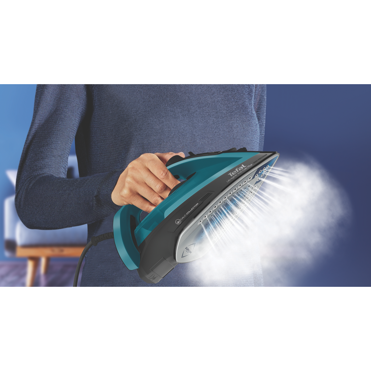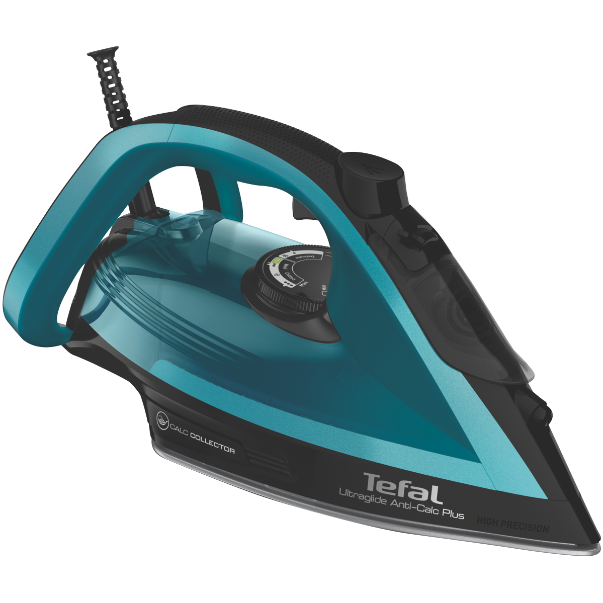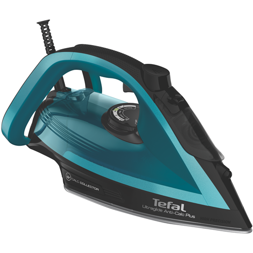 Glide into effortless ironing with the Tefal UltraGlide Anti-Calc Plus. This sleek black and crystal iron makes light work of wrinkles with its powerful 2400 watt Durilium Airglide soleplate that delivers smooth 45g/min of continuous steam. Blast through stubborn creases with the 185g/min steam shot and vertical steam and spray functions. The large 270ml water tank allows longer ironing sessions while the anti-drip and anti-calc features keep things mess-free. Auto shut off provides safety and peace of mind. With a 2 meter cord length and compact 1.59kg body the Tefal UltraGlide Anti-Calc Plus offers exceptional performance convenience and versatility. Experience the difference an advanced steam iron can make in your ironing routine. The manufacturer's part number for this product is FV5873. Find your flow with the Tefal UltraGlide Anti-Calc Plus today.