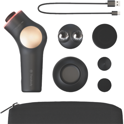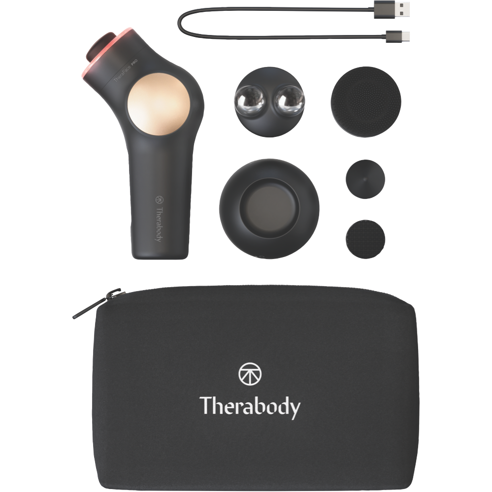 Achieve a revitalized youthful glow with the Therabody TheraFace Pro Black massage gun. This percussive massager delivers a powerful massage experience with three adjustable speed settings up to 2400 pulses per minute. The ergonomic grip allows you to target hard-to-reach areas on your face and neck for a deeply relaxing facial massage. Additional attachments like the micropoint tip and LED light therapy ring help to stimulate collagen production reduce wrinkles and leave your skin looking its best. With up to 120 minutes of cordless use per charge you can enjoy a soothing facial massage anywhere. The TheraFace Pro also removes dirt oil and debris from your pores with a deep cleanse setting. Give your face the Therabody treatment and see a noticeable difference in tone and texture. The manufacturer's part number for this product is TF03582-01. Bring the luxury of an in-spa facial into your home beauty routine with the Therabody TheraFace Pro.