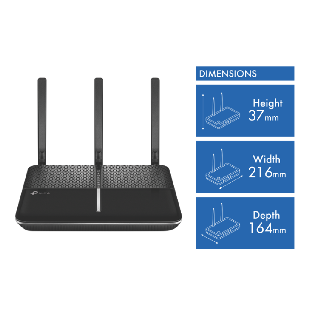 Additional Features The Ethernet WAN port supports wired connection to cable or fibre modem, letting you take full charge of its wireless capabilities as a router, 1733 Mbps on 5 GHz band and 300 Mbps on 2.4 GHz band, DSL, 12V/1.5A