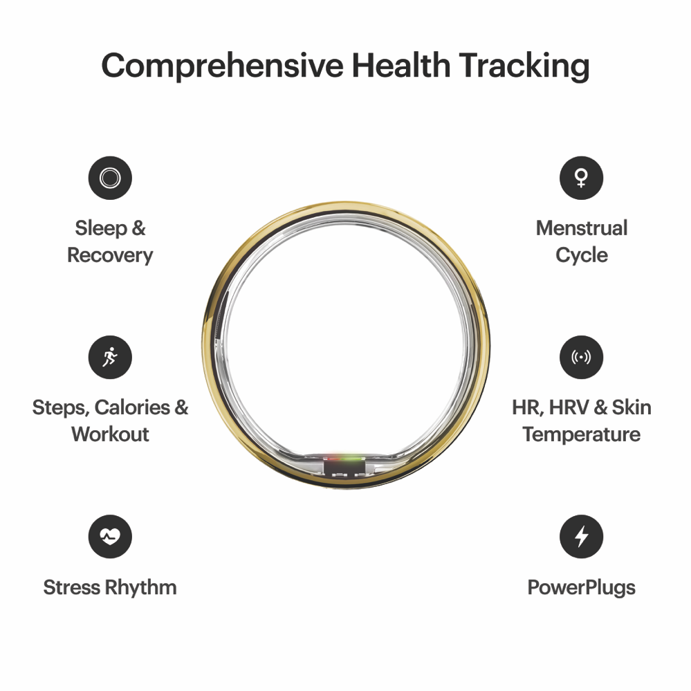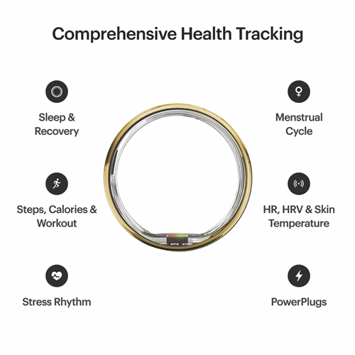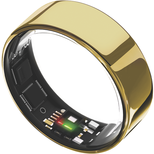 Track your health with precision using the Ring Air Size 06 in elegant Bionic Gold. This lightweight fitness tracker weighs just 2.4-3.6g and is crafted from fighter jet grade titanium with a hypoallergenic epoxy resin interior for comfortable all-day wear. Compatible with both iOS 15+ and Android 6+ devices it connects via Bluetooth 5.0 to monitor your circadian rhythm sleep patterns and even detect caffeine windows and AFib. The ring's impressive water resistance lets you wear it up to 100 meters deep for 12 hours while the battery lasts 4-6 days on a single charge. Comes with a 1-year manufacturer's warranty. Model 170113.