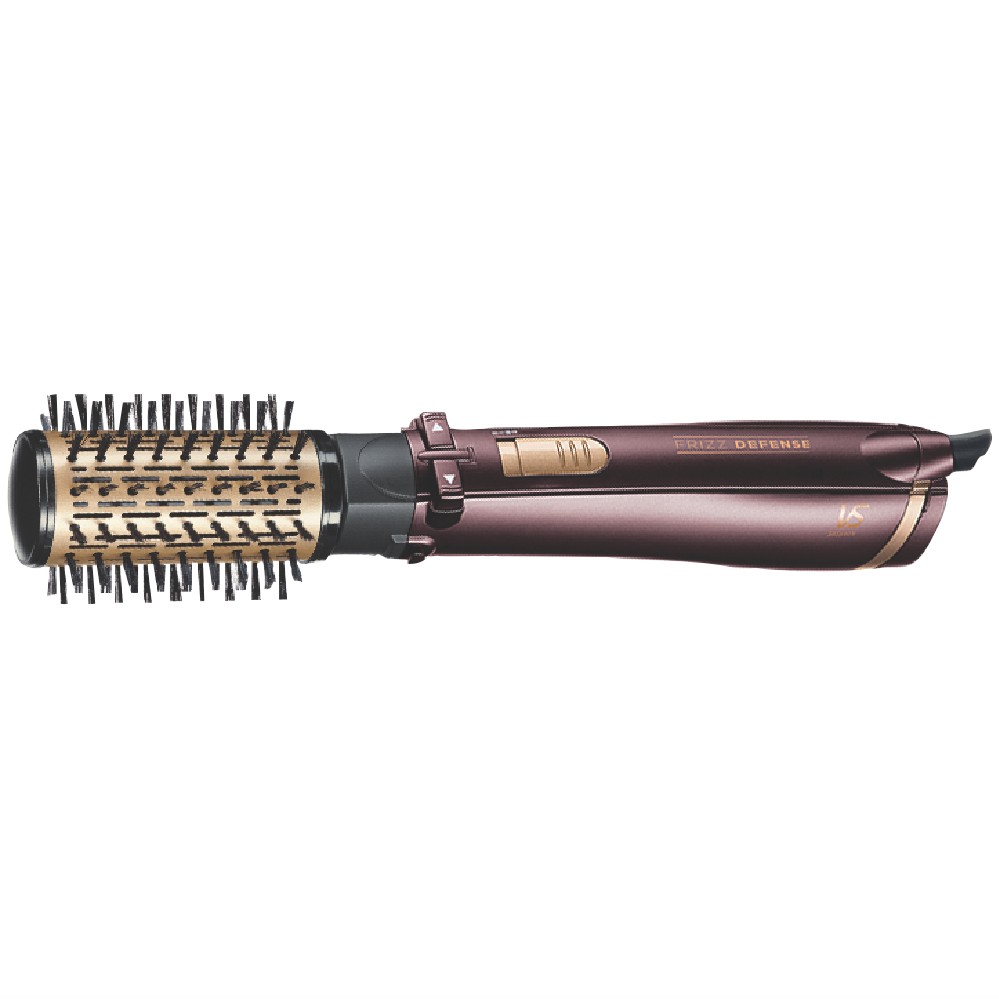 Fight frizz with the VS Sassoon Frizz Defense Rotating Hot Air Styler that combines a brush and hair dryer in one device so you can easily create a salon style blow-dry in your own home. This Frizz Defense VS2735GA styler uses Ionic Conditioning Technology to reduce frizz by releasing ions to eliminate static and condition the hair cuticle. A multi-directional rotating ceramic barrel locks in and enhances shine for easy styling. You ll love the ease in drying shaping & adding volume with this styler with Super Frizz Defense Technology.