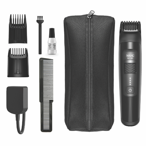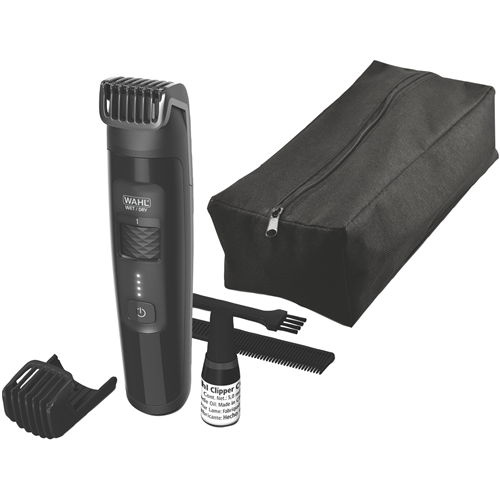 Give your beard and hair the perfect trim with the versatile Wahl Aqua Trim Waterproof Trimmer. This cordless beard and hair clipper is 100% waterproof making grooming mess-free and easy to clean. With up to 100 minutes of cordless runtime you can trim wet or dry for total convenience. The smooth-glide combs and precise length settings from 0.5mm to 20mm allow you to customize your desired look. The bright LED displays clearly indicate battery level and cutting length while the lithium ion battery delivers reliable power. This waterproof beard trimmer comes with 2 adjustable combs blade oil a cleaning brush and soft storage pouch. It's covered by a 2 year manufacturer's warranty and Wahl's satisfaction guarantee. Upgrade your grooming routine with the Aqua Trim. Order yours today.