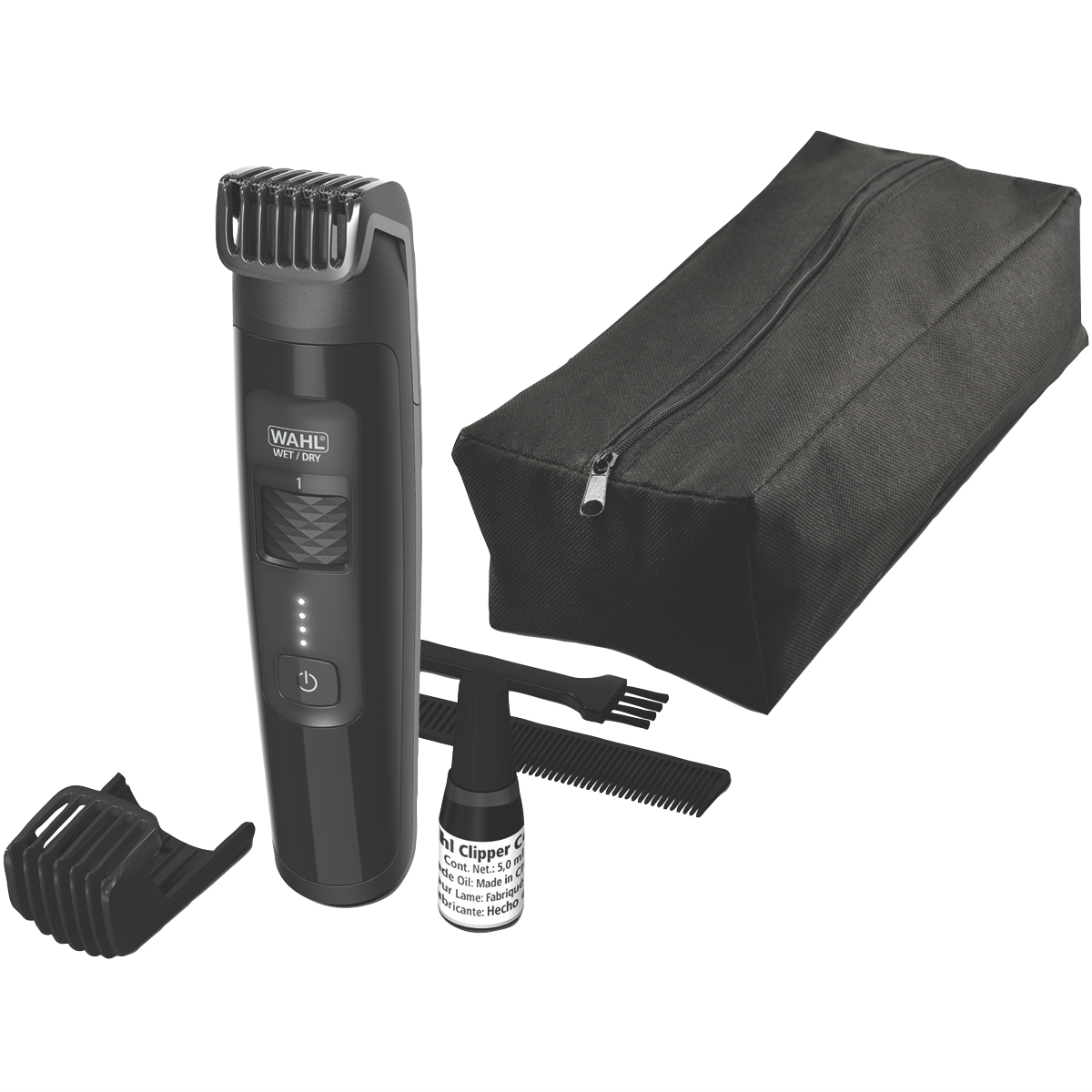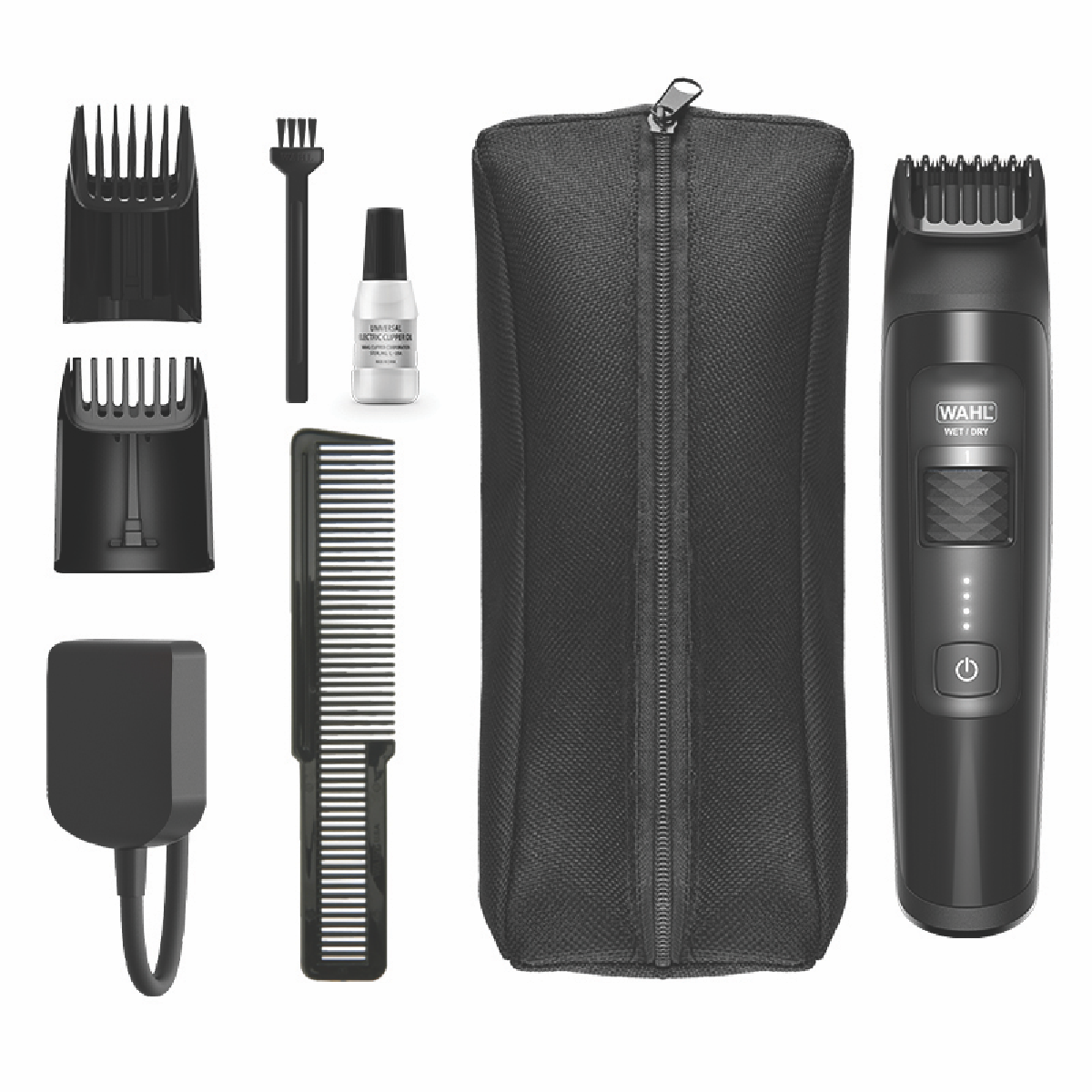 • Includes 2 adjustable combs, beard comb, blade oil, cleaning brush