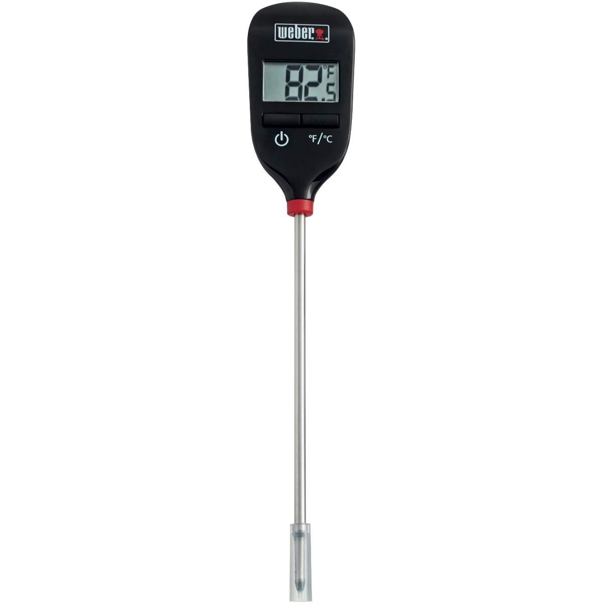 The Weber Instant Read Thermometer is the fast and accurate solution for monitoring your barbecue. With the ability to provide precise temperature readings in seconds this digital thermometer takes the guesswork out of grilling. The large easy-to-read display shows temperatures in either Fahrenheit or Celsius at the touch of a button so you'll know exactly when your steaks chops burgers and more are cooked to perfection. An ultra-fast thin probe gets temp readings 2-3 times faster than conventional thermometers so you spend less time waiting and more time enjoying perfectly cooked food hot off the grill. This instant read thermometer is a must-have for backyard chefs who want foolproof results at the barbecue every time. Durable and reliable it delivers the speed and accuracy you need to master grilling. The manufacturer's part number for this product is 6750. Grill with confidence by adding this instant read thermometer to your BBQ toolkit today.