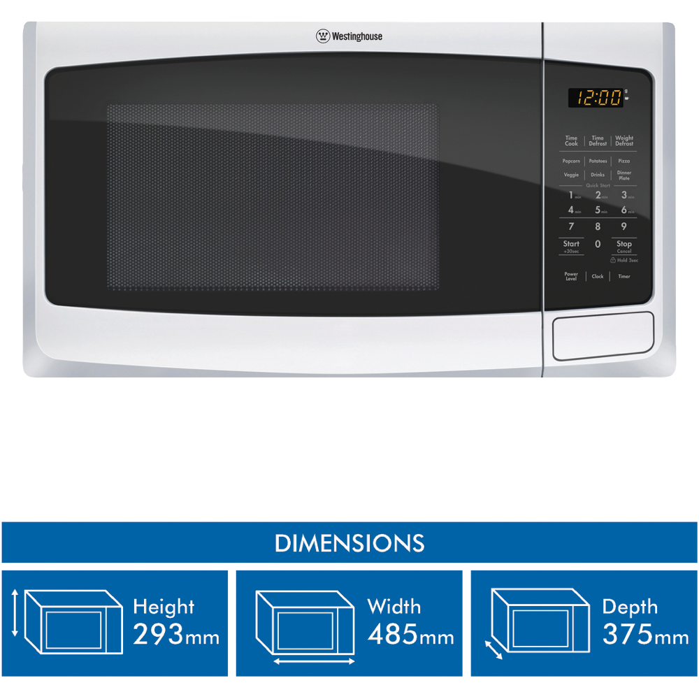 This compact Westinghouse 23L 800W microwave in crisp white is designed to fit seamlessly into any kitchen. With 10 variable power levels touch controls and a generous 23 litre capacity you can quickly and easily defrost reheat or cook a variety of foods. The 270mm glass turntable accommodates larger dishes while the child lock provides extra peace of mind. Other useful features include a memory function to save your favourite cooking times and a handy kitchen timer. Measuring 48cm wide 29cm high and 37cm deep it's an ideal size for apartments or smaller kitchen spaces. The sleek white finish looks great in any décor. With a 1 year warranty from Westinghouse you can cook and reheat with confidence every day. The manufacturer's part number for this product is WMF2302WA. Bring home simple speedy cooking with this microwave today.