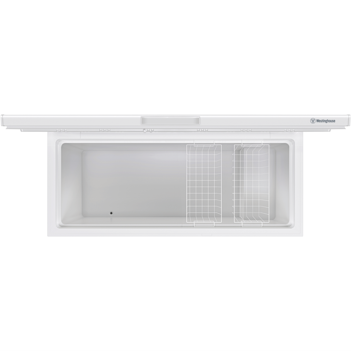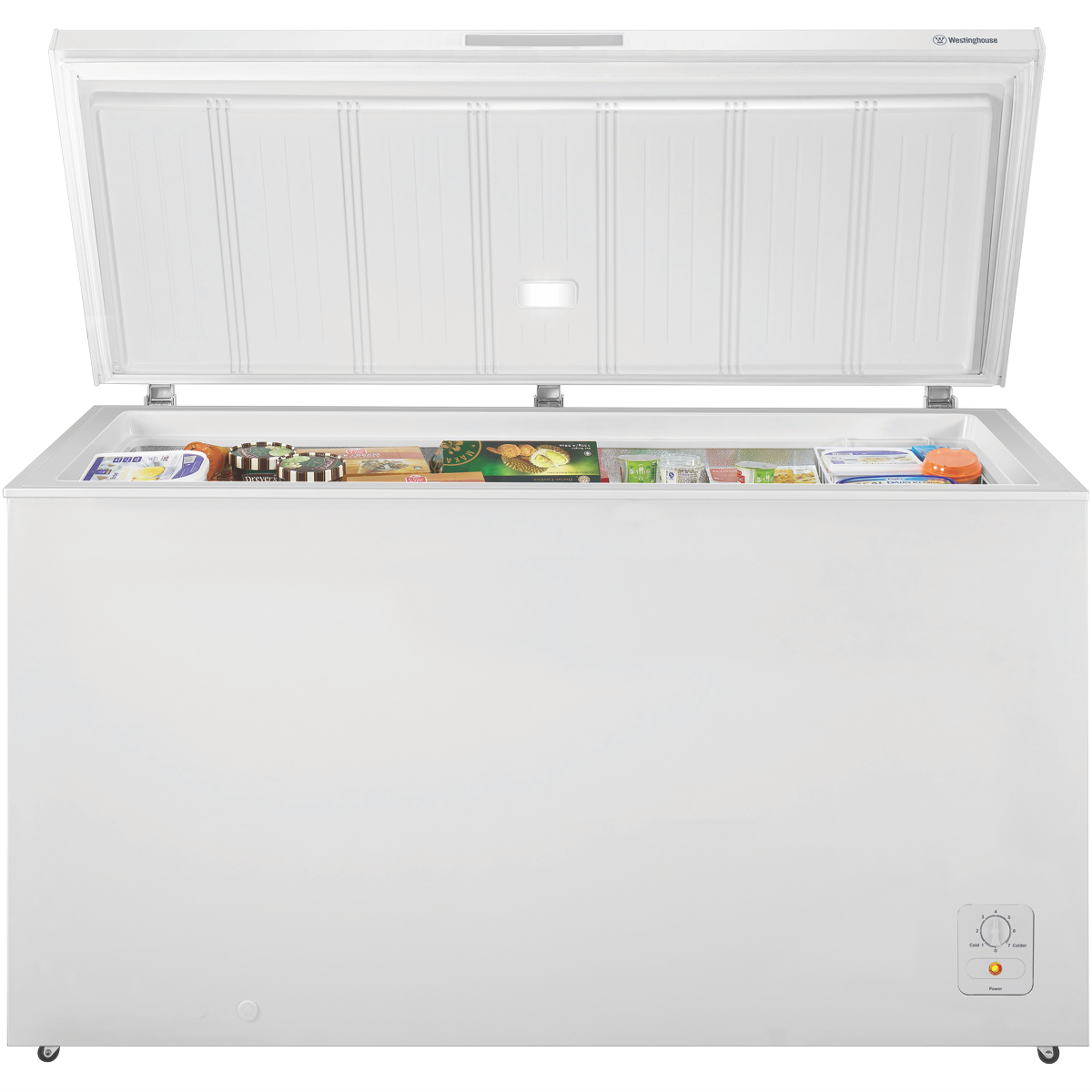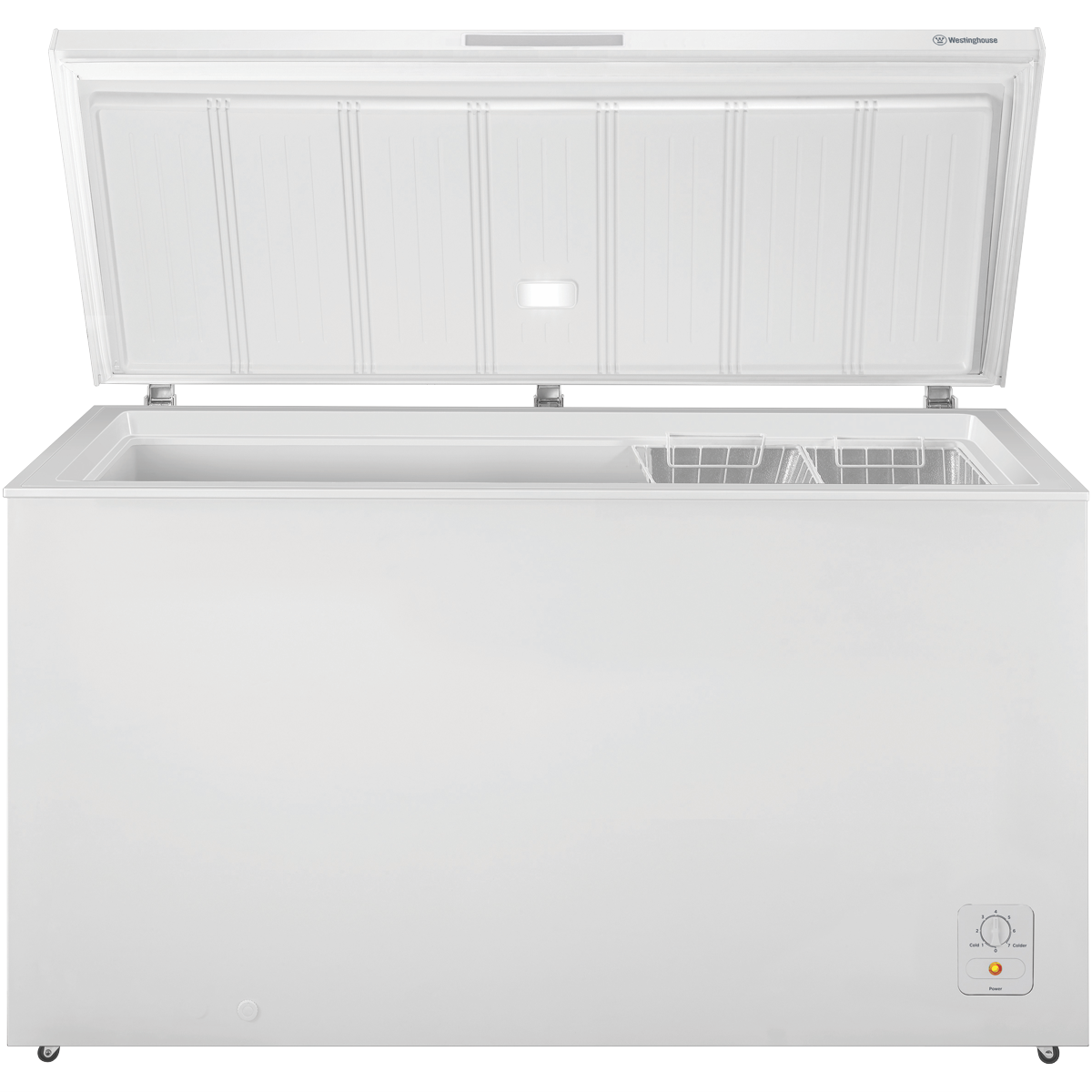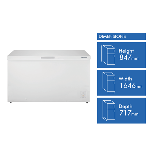 Step into a world of spacious and efficient food storage with the Westinghouse 500L Chest Freezer. This top-opening freezer features a generous 500 litre capacity providing ample room for bulk frozen goods or large families. The white finish blends seamlessly into any kitchen decor. Quick chill rapidly cools warm items while the removable baskets and inner liner optimize organization. Adjustable legs allow you to level the unit on uneven floors. Advanced features like the hovering door recessed handle and ultra thin hinges lend a modern touch. The built-in power-off protection gives you peace of mind. Westinghouse backs this freezer with a 2 year warranty for added assurance. The manufacturer's part number for this product is WCM5000WE. Seize control of your grocery budget and make time-saving meal prep a breeze with the spacious Westinghouse 500L Chest Freezer.