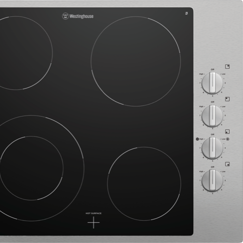 The minimalistic design of the Westinghouse 60cm Ceramic Cooktop WHC642SC offers function and simplicity to your kitchen. Four cooking zones with nine power levels to choose from gives you precise control over your cooking. Knob controls offer easy operation during operation and a sophisticated black ceramic glass finish with a stripe of stainless steel and silver on the trip adds a touch of style to your kitchen. This ceramic cooktop has an easy-to-clean surface that will simply wipe clean with a mild detergent and a damp cloth minimising your time spent in the kitchen.