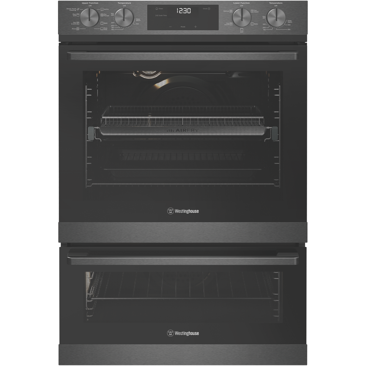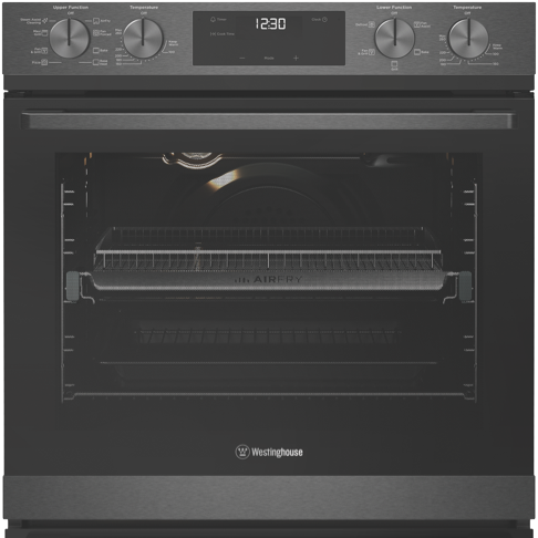The stylish Westinghouse 60cm Electric Double Oven in Dark Stainless Steel finish is designed to be the centerpiece of your kitchen. With generous 72L and 38L usable capacities this double oven lets you cook multiple dishes at once. The main oven has 8 functions including AirFry SteamAssist Clean pizza and traditional bake while the second oven has 5 functions like grill bake and defrost. The control knob and touch control LED panel offer convenient operation. The included accessories like baking trays grill inserts oven racks and more let you get cooking straight away. This double oven can be installed by a professional to maximize your cooking potential. With a 2 year manufacturer's warranty the Westinghouse Double Oven provides the reliability and performance you need to feed the whole family. The manufacturer's part number for this product is WVE6526DD. Bring home the Westinghouse 60cm Electric Double Oven today for serious multi-tasking abilities.