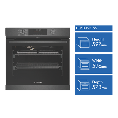 Elevate your cooking with the multifunctional Westinghouse 60cm Pyrolytic Steam Oven. This dark stainless steel electric oven adds a touch of modern style to your kitchen while offering exceptional versatility. With its generous 72 litre capacity you'll have plenty of space to create delicious family meals and entertain guests. Choose from 10 functions like traditional baking AirFry pizza rapid heat grill and more. The combination of fan forced cooking and steam infuses moisture for ridiculously tender roasts juicy casseroles and perfectly risen breads. The handy built-in timer allows you to cook hands-free. The cool touch door with 4 layers of glass ensures added safety. This Westinghouse steam oven comes equipped with a range of accessories like chrome shelves a baking tray grill insert and more to maximise your cooking potential. The easy-clean pyrolytic function reduces food spills to a fine ash for swift oven cleaning. With a 2 year manufacturer's warranty you can purchase with confidence. Unlock your inner chef and take your cooking to new heights with the Westinghouse 60cm Pyrolytic Steam Oven. The manufacturer's part number for this product is WVEP6717DD. Discover how this versatile steam oven can make meal prep efficient and enjoyable for your household.