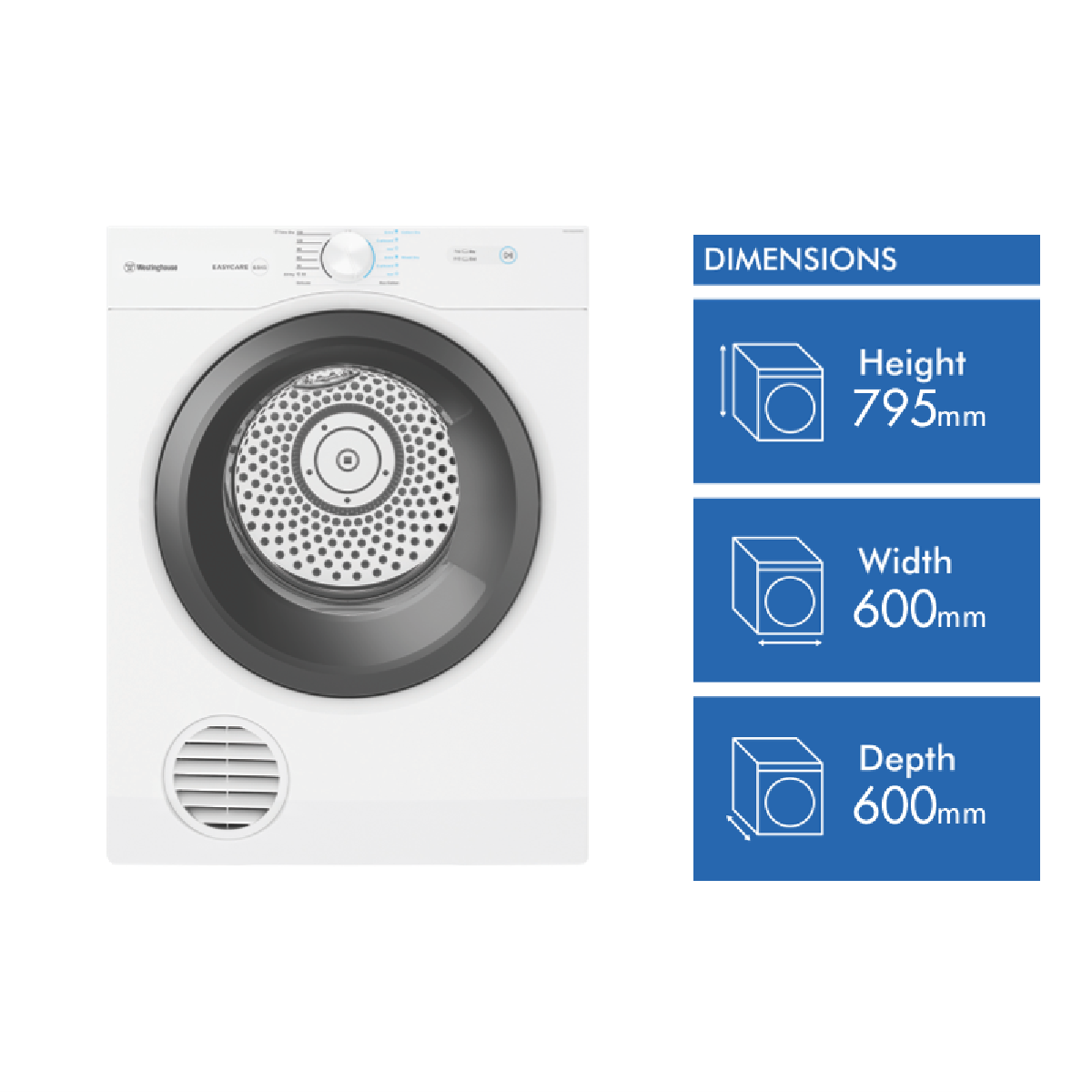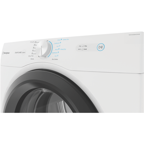 Make laundry day simpler and more efficient with the Westinghouse 6.5kg Vented Dryer. This medium capacity dryer features a stainless steel drum with reverse tumbling action to gently dry clothes. With 6 drying programs including Timed Drying Cotton Delicate Eco Cotton Airing and Mixed you can customize cycles to suit different fabrics. Auto Sensing technology detects moisture levels and automatically adjusts drying time for optimal results. The front lint filter is easy to access for quick cleaning between loads. Mount this vented dryer on the wall to save floor space. At just 600mm wide it fits into compact laundry areas. The white finish blends seamlessly into your existing decor. Set the buzzer to alert you when loads are done. With extra cupboard and iron dry settings remove clothes at your preferred dryness level. The Auto Cool Down function prevents over-drying and wrinkling.The Westinghouse 6.5kg Vented Dryer includes a 2 year manufacturer's warranty for peace of mind. Convenient features like time drying stainless steel drum and flexible venting make laundry simple. Bring efficiency convenience and versatility to your laundry with this vented dryer. The manufacturer's part number for this product is WDV656N3WB..