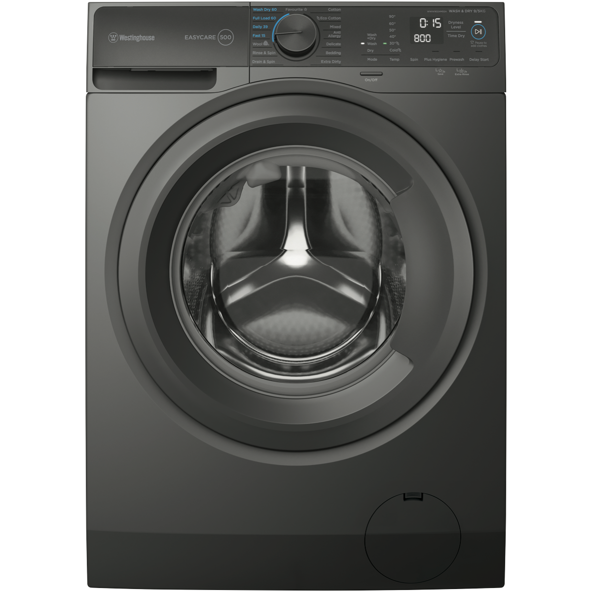 Discover the ultimate laundry solution with the Westinghouse 9kg-5kg Combo Washer Dryer. This innovative appliance seamlessly combines washing and drying capabilities making laundry day a breeze. With a generous 9kg washing capacity and 5kg drying capacity this combo washer dryer is perfect for households of all sizes. The sleek grey finish adds a touch of sophistication to any laundry room. Enjoy a wide range of 15 washing programs including delicate mixed fast 15 daily 39 full load 60 extra dirty bedding and gym wear catering to all your laundry needs. The washer dryer also offers convenient options like rinse hold extra rinse plus hygiene delay end spin selection wash temperatures and variable spin speeds up to 1200rpm. The inverter motor ensures quiet and efficient operation while the 3XL drum opening allows for easy loading and unloading. Save your favorite programs for quick access and take advantage of the pause and add button for added flexibility. With a 4-star WELS water rating and 5-star wash energy rating this combo washer dryer is both water and energy efficient. The manufacturer's part number for this product is WWW9024M5SA. Experience the convenience and performance of the Westinghouse EasyCare combo washer dryer in your home today.