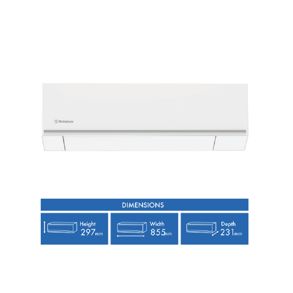 Stay cool in summer and cozy in winter with the Westinghouse 2.7kW reverse cycle split system air conditioner. With a 7-star energy rating for cooling and 3 stars for heating you can enjoy efficient temperature control all year round. The inverter technology keeps noise levels down to just 38 decibels indoors and 54 decibels outdoors. Plus the 24-hour timer and Wi-Fi connectivity give you total control even when you're not at home. The HEPA dust and ion filtration system ensures your air stays fresh and clean. This split system featuring indoor unit WSD27HWA-I and outdoor unit WSD27HWA-E comes with a 5-year manufacturer's warranty for extra peace of mind.