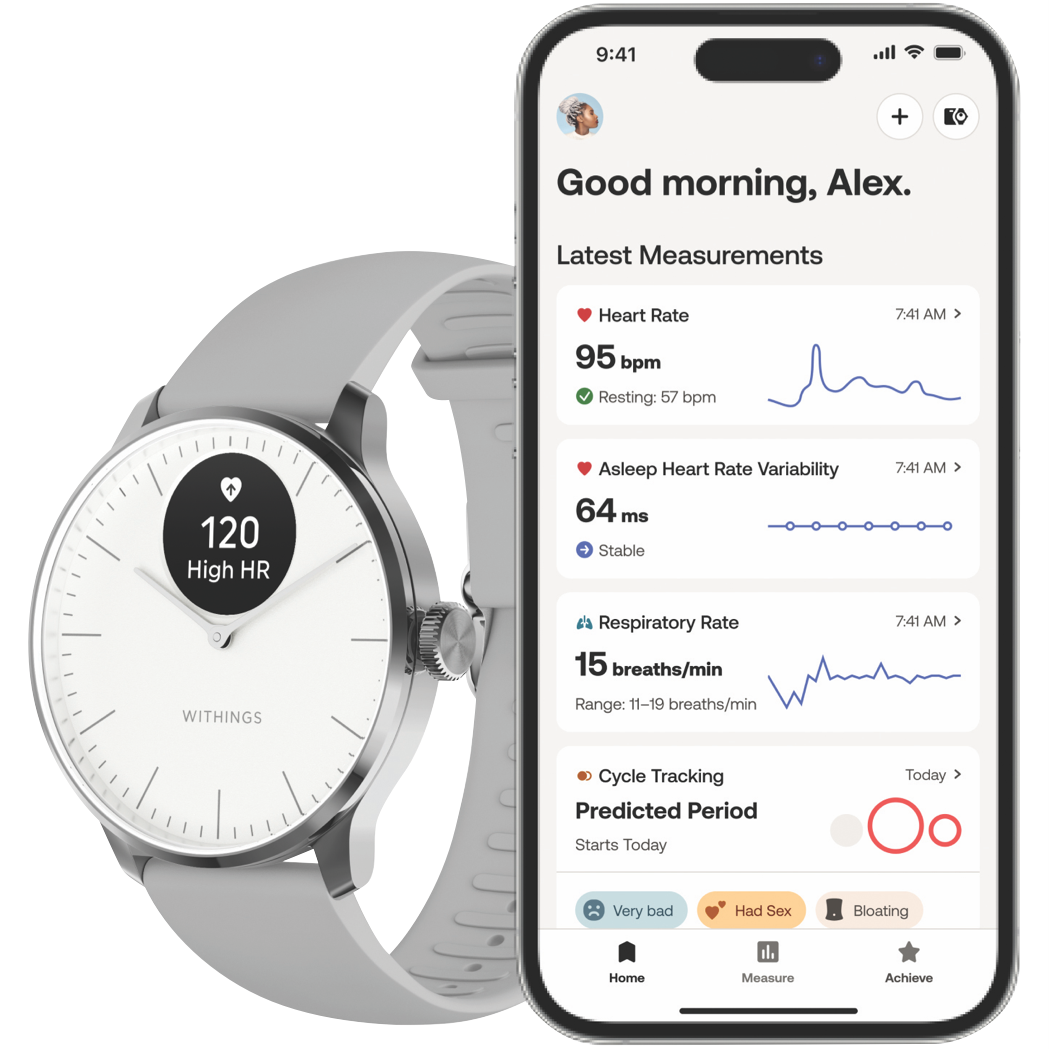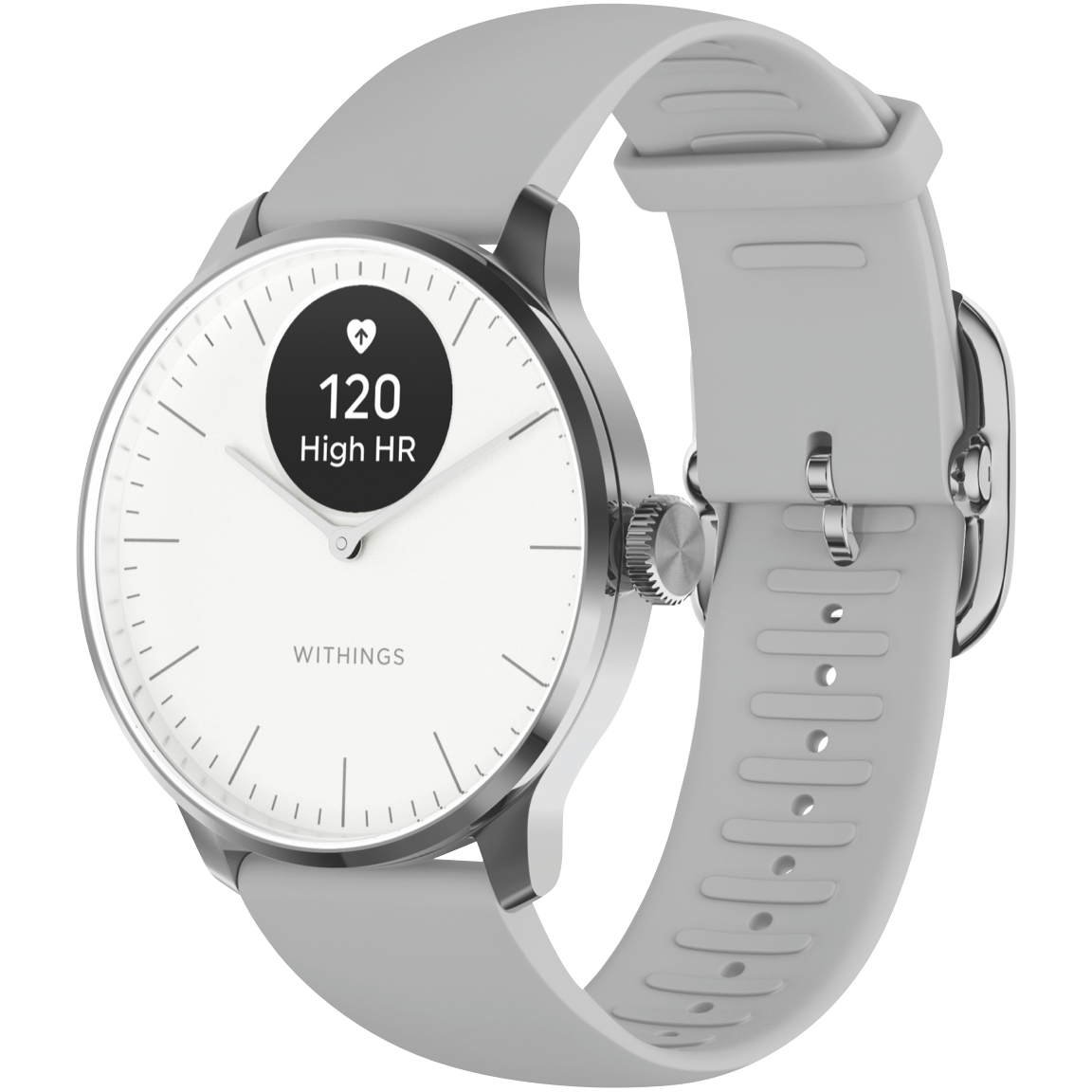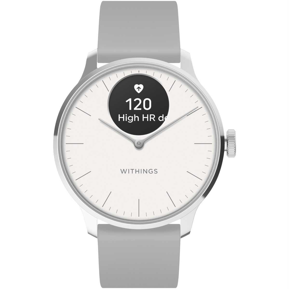 Time to step up your health tracking game with the sleek new Withings Scanwatch Light. This stylish smartwatch boasts a 37mm grayscale OLED display to deliver vital health metrics right to your wrist. Monitor your heart rate track daily steps and sleep patterns and utilize connected GPS during workouts with this slim lightweight watch. Water resistant to 50 metres the Scanwatch Light is built for your active lifestyle. Sync seamlessly to your smartphone and enjoy unlimited online storage of health data. With up to 30 days of battery life you can go weeks between charges. The Scanwatch Light will inspire you to move more each day and take control of your health and fitness. Backed by a 12 month Withings warranty for peace of mind.