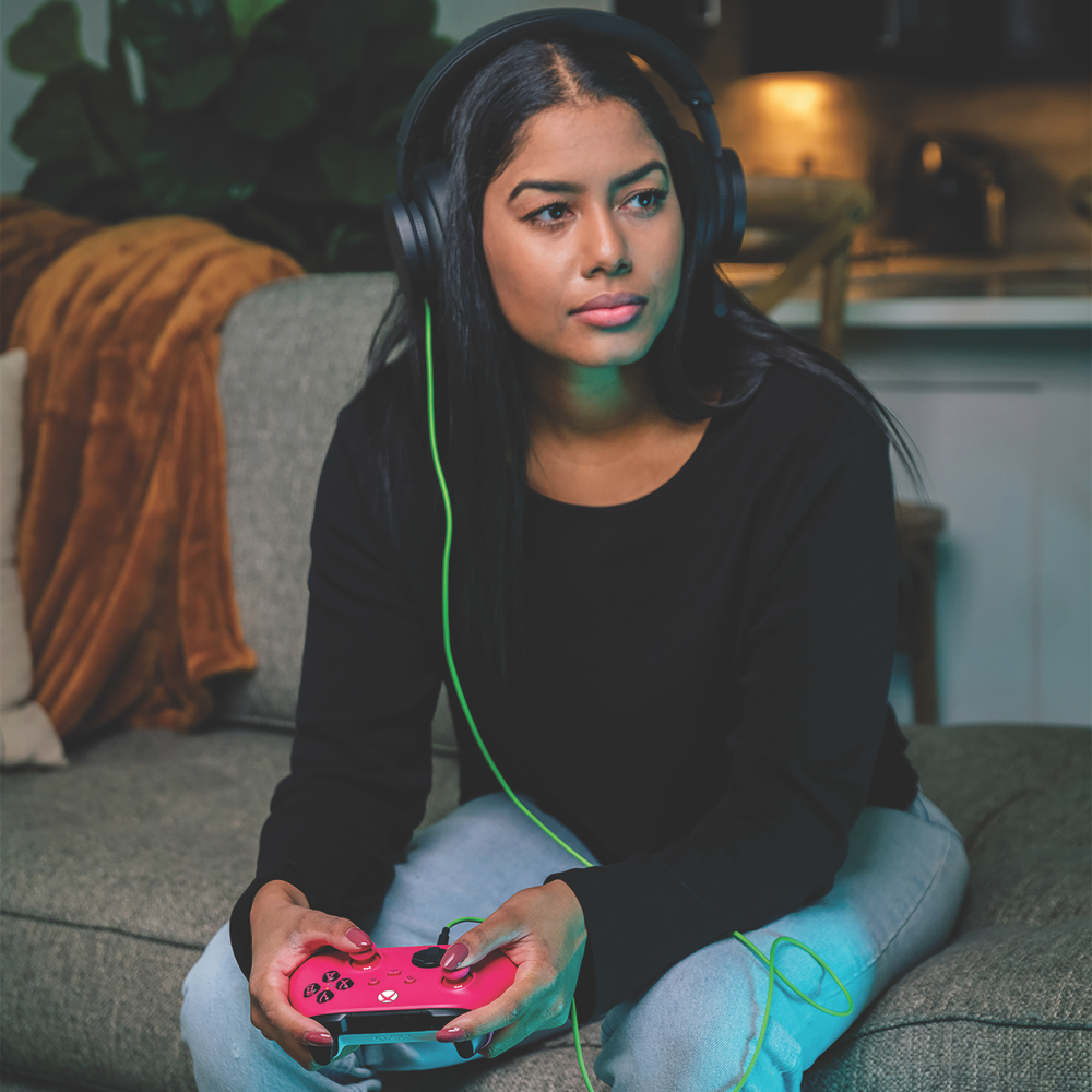 Bring vibrant color and wireless freedom to your Xbox gaming with the Xbox Wireless Controller in eye-catching Deep Pink. This advanced gaming controller connects via Bluetooth to Xbox Series X Xbox One and Windows 10 devices so you can game lag-free across platforms. With up to 40 hours of battery life you can keep playing all day or night long. The headphone jack allows you to plug in any compatible headset for immersive game audio. Feel closer to the action thanks to the textured grip responsive buttons and Impulse Triggers. The modernized hybrid D-pad provides greater precision. Stay on target with the share button that lets you capture and share content seamlessly. With a sleek streamlined design and timeless color this wireless Xbox controller adds a pop of personality to your gaming setup. Experience precision gaming and total control with this Xbox wireless controller. The manufacturer's part number for this product is QAU-00084. Give your Xbox gameplay a bold fresh look with this Deep Pink wireless controller.